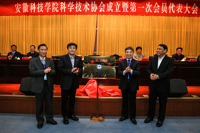 会上,肖新代表科学技术协会筹备组作校科协筹备工作报告;省科协陈佩环宣读了《安徽省科协关于同意成立爱体育手机官方网站_爱体育(中国)科学技术协会的批复》;蒋德勤、魏军锋、李震、陈岭共同为“爱体育手机官方网站_爱体育(中国)科学技术协会”揭牌。