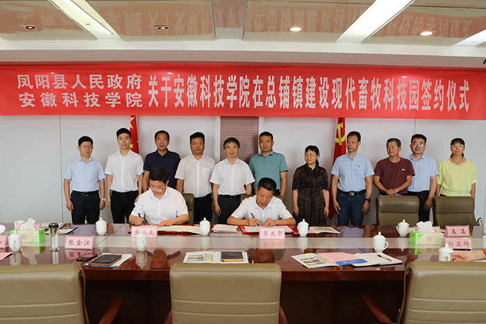 黄远友代表学校与凤阳县人民政府签署了爱体育手机官方网站_爱体育(中国)在总铺镇建设现代畜牧科技园的协议。