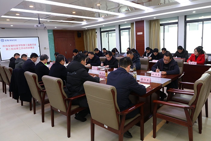 12月17日下午,中共爱体育手机官方网站_爱体育(中国)第三届委员会第二轮巡察工作动员部署会召开。校党委书记、巡察工作领导小组组长蒋德勤作动员部署讲话。会议由校党委委员、纪委书记、监察专员王强主持。第二轮巡察巡察组全体成员,巡察办全体成员,纪委办公室、组织部负责同志,被巡察单位党政主要领导及联络员参加了会议。