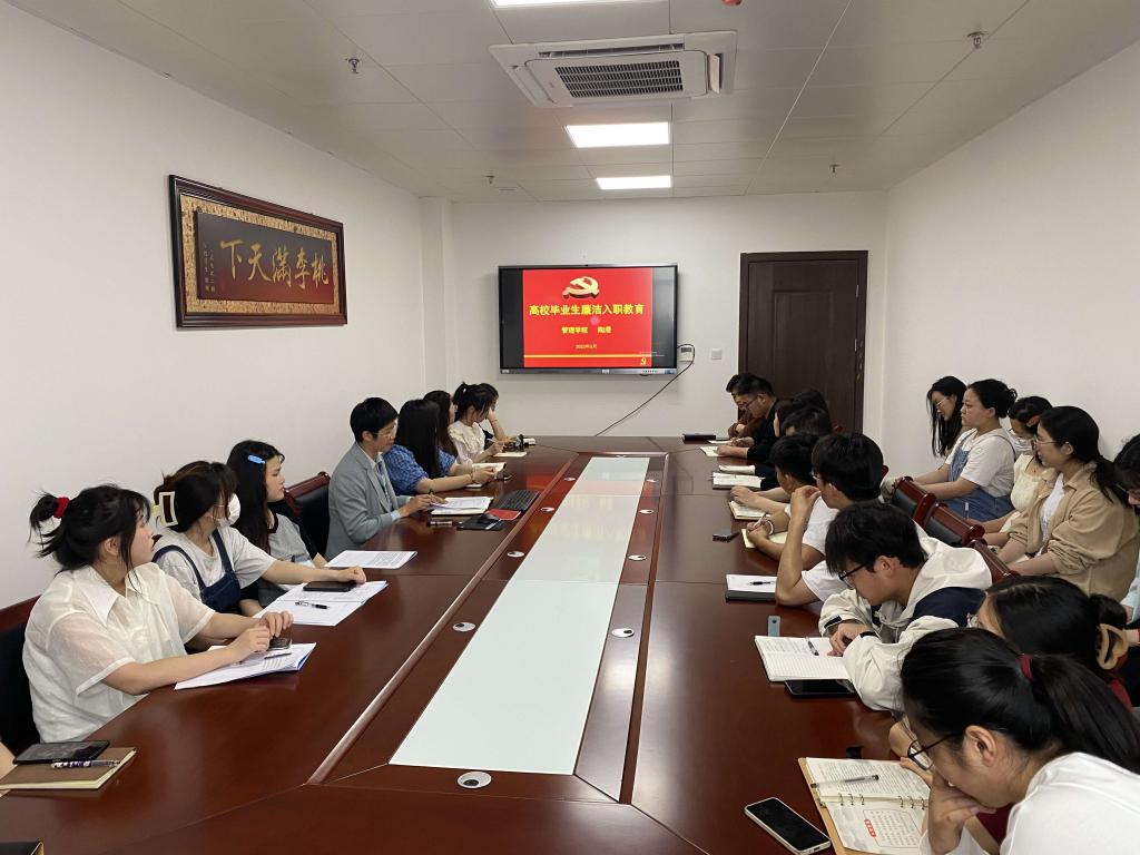 管理学院历来重视廉洁教育,将其作为学院弘扬新时代廉洁文化、加强廉洁文化建设的重要抓手。此次毕业生廉洁入职教育有助于引导学院青年学子进一步筑牢信仰之基、补足精神之钙、把稳思想之舵,为青年学子走出校园、迈向社会系好人生廉洁诚信、求思进取的第一粒扣子。