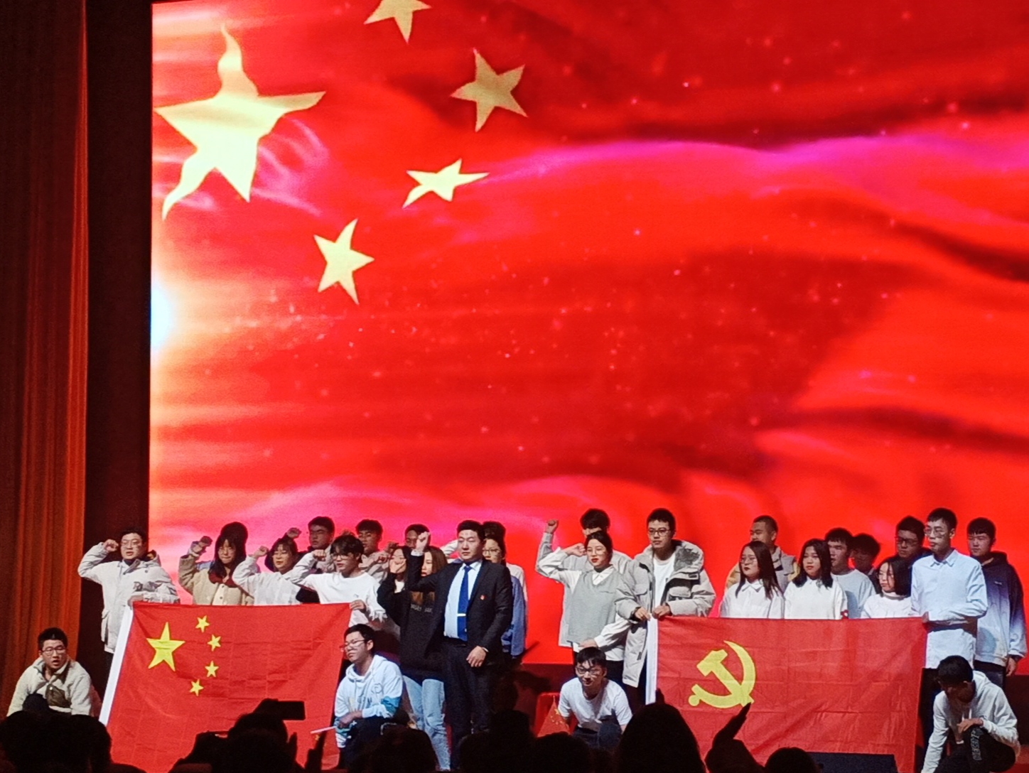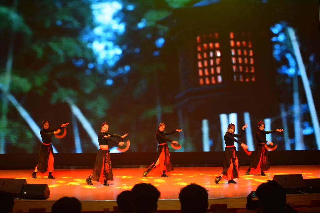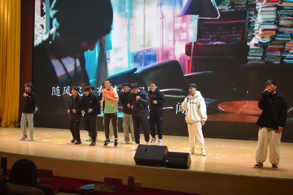 本场晚会以“改革换新学四史,复兴强国踏征程”为主题,分为三个篇章。第一个篇章“红日千秋照,乾坤万代红”,器乐合奏《开往春天的地铁》让人沉醉,歌曲《奔跑》、《最美的太阳》让我们感受到了满满的活力。第二个篇章“红旗擎天地,妙手绣乾坤”,舞蹈《天上飞》和说唱《talk too much》都充满着动感的韵律,带动了全场的氛围,观众拍手叫好。最后一个篇章“花沐春雨艳,福依党恩生”以激情的朗诵,师生共同演绎的《我和我的祖国》等,让同学们感受到作为中国人的荣光与自豪,相信在党的领导下,明天会更好,国家会更强盛!