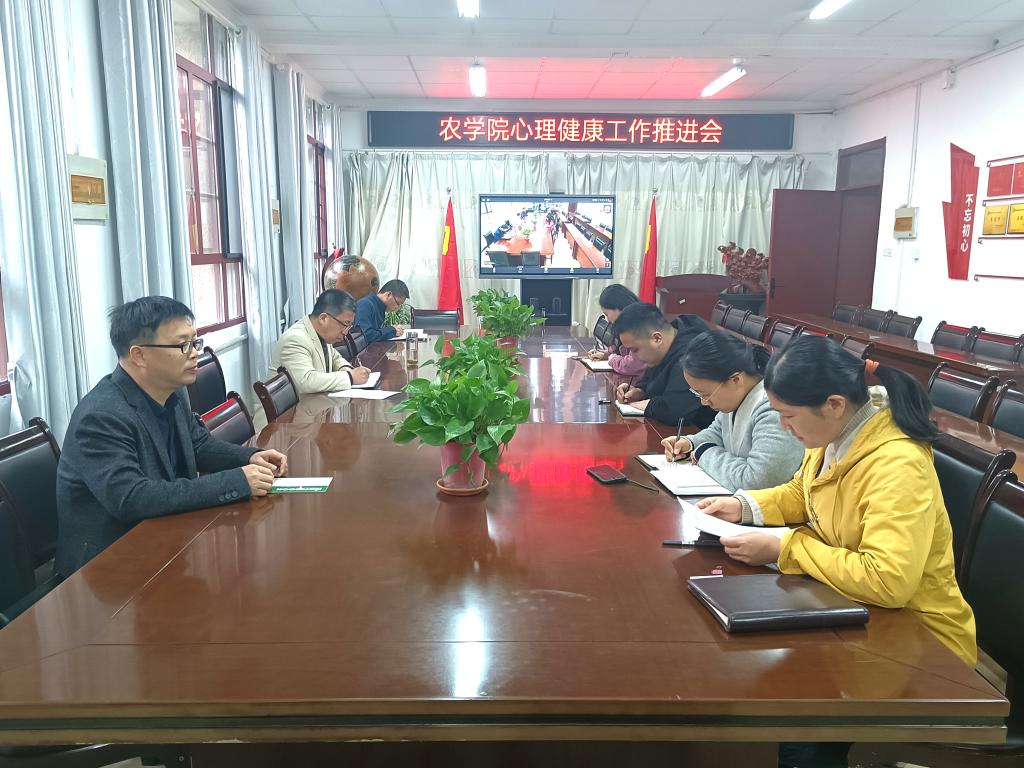 为进一步提高学生心理健康工作针对性和有效性,扎实做好疫情防控下学院学生心理健康教育工作,4月15日下午,农学院在学院会议室以线上线下相结合的形式召开心理健康工作推进会。农学院党委书记何世潮,党委副书记、纪委书记张轶辉,全体专兼职辅导员参加会议。会议由农学院心理健康工作负责老师郑玉莲主持。