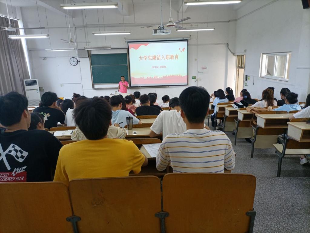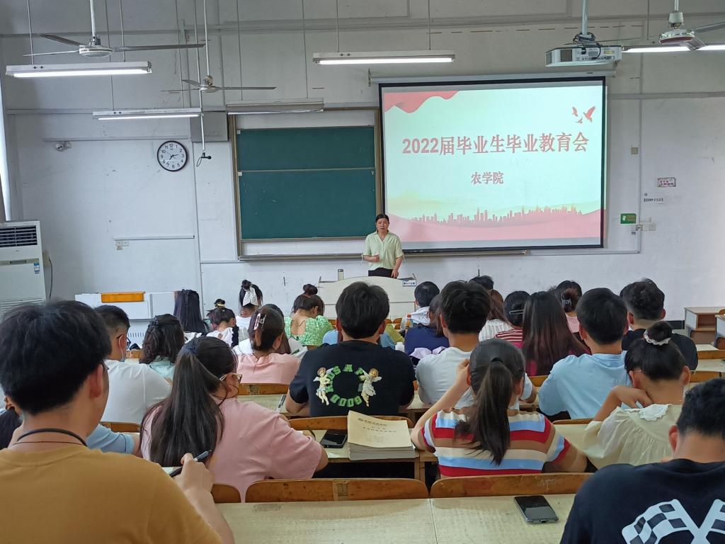 6月1日下午,农学院在求知楼A207召开2022届毕业生廉洁入职教育暨党员组织关系转接布置会,农学院党委副书记、纪委书记张轶辉,纪委副书记、团委书记郑玉莲担任主讲,学院全体毕业生党员参加会议。