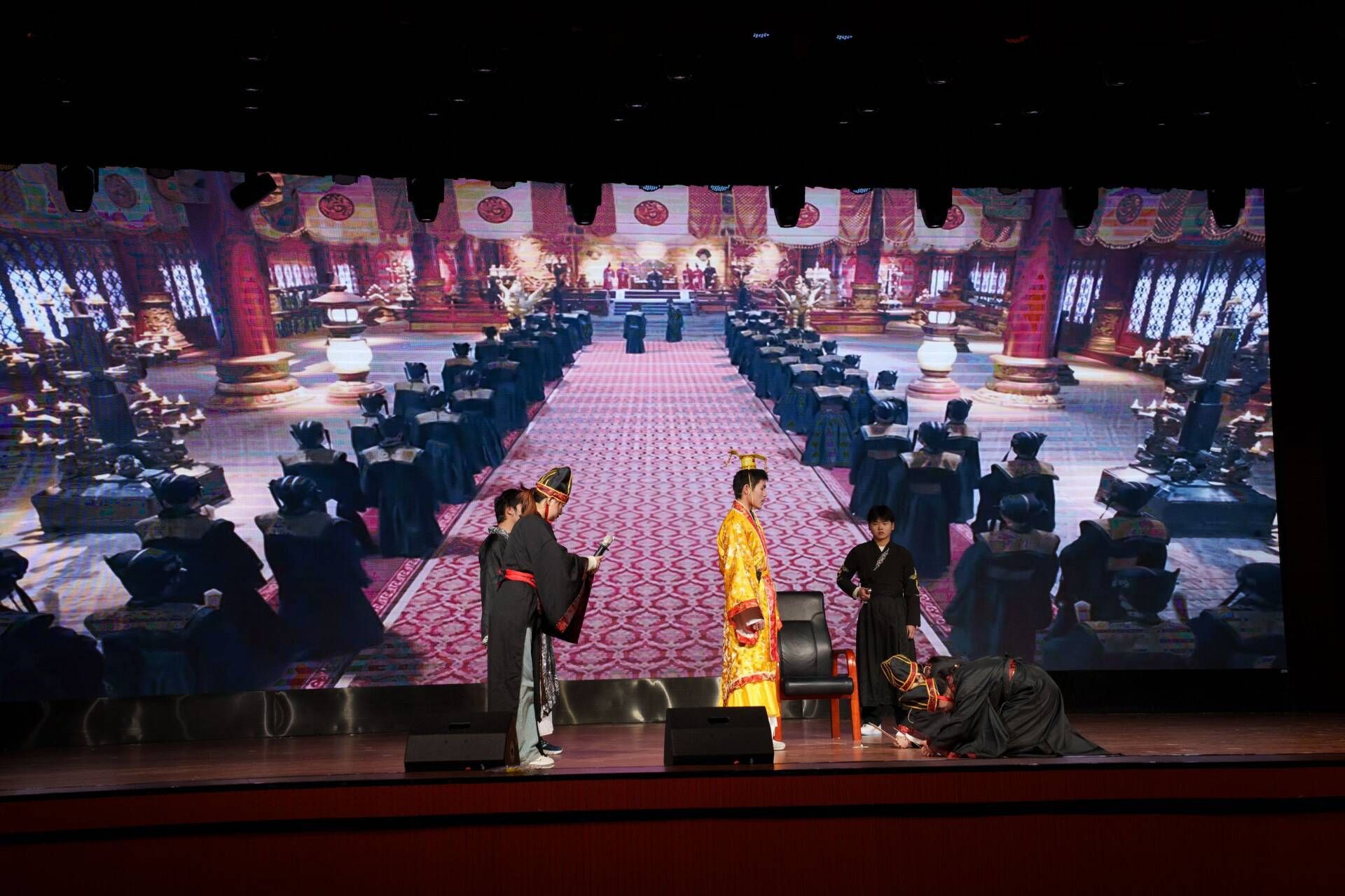 此次历史剧展演作为《中国法制史》翻转课堂教改活动,是由法学系教师田野博士策划指导,2024级法学专业全体新生和2023级部分同学参与制作。众学子齐心谋划、携手奋进,为观众呈现出一场精妙绝伦的艺术佳作。