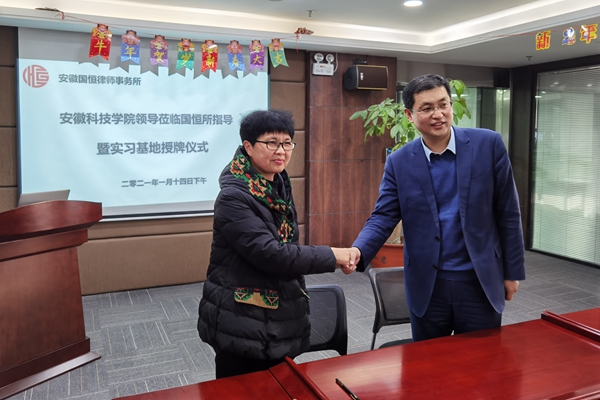 人文学院一行分别参观了安徽国恒律师事务所、安徽徽商律师事务所。与安徽国恒律师事务所签署了校外实习实训基地协议和就业基地协议,授予“爱体育手机官方网站_爱体育(中国)实习实训基地”标牌,并向两位资深律师颁发了特聘教授聘书。双方在总结前期合作的经验做法基础上,就后续深化合作的具体事宜进行了广泛交流,达成了多项富有建设性的创新合作意向。