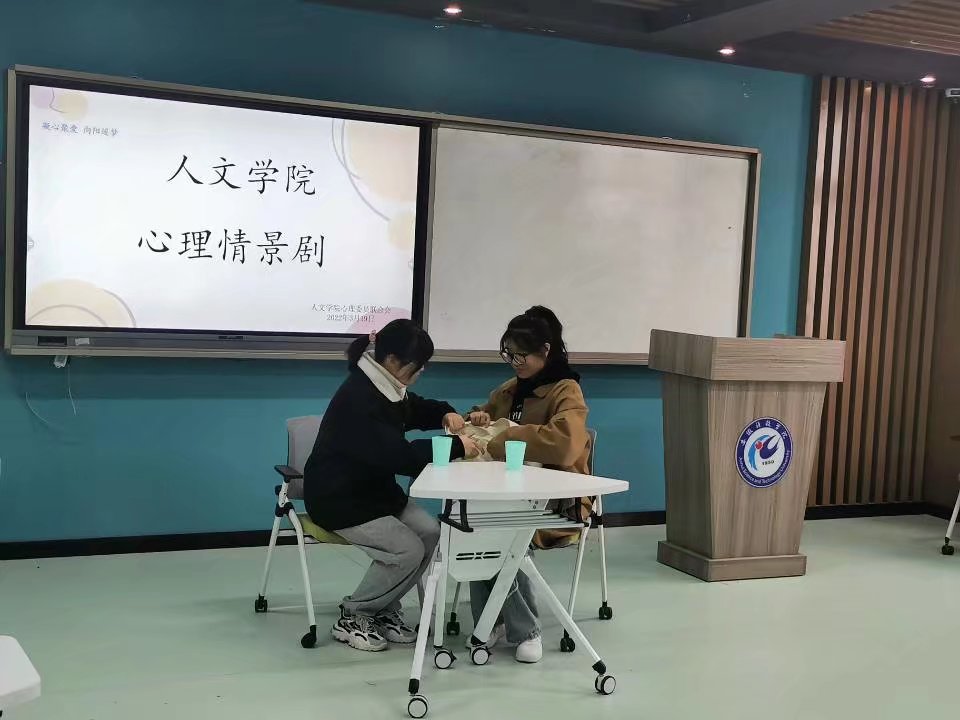 为了深入了解当代大学生的心理状况,增强学生的心理健康意识,引导学生运用积极心理学的知识和方法,形成乐观向上、充满自信的态度,以阳光心态去学习和生活,3月26日,人文学院在求B309举办了校园心理情景剧大赛,通过生动形象的表演,跌宕起伏的剧情故事,向学生宣传心理健康知识,提高学生对心理问题的认识。