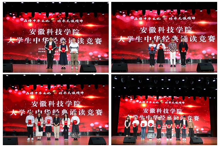 为贯彻《教育部等九部门关于开展第26届全国推广普通话宣传周活动的通知》的文件精神,助力推广普通话,发挥语言文字的浸润、助力作用,激发青年大学生奋斗精神与爱国情怀,9月25日下午,由教务处主办、人文学院承办的爱体育手机官方网站_爱体育(中国)大学生中华经典诵读竞赛决赛在大学生活动中心成功举行。蚌埠市广播电视台主持人吕彪,凤阳县融媒体中心新闻部编辑记者胡松、马克思主义学院教授王凤杰、学生处康佳蓉、人文学院专业课教师曹宋艳担任此次比赛评委。