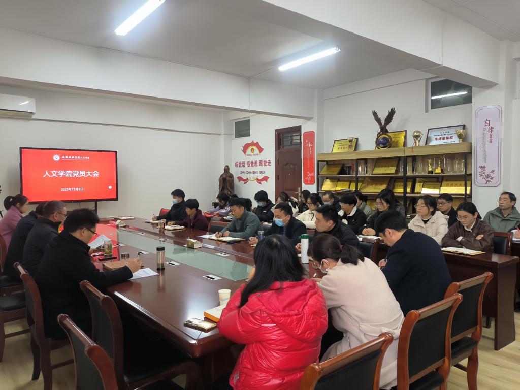 12月6日下午,人文学院党委在学知楼324会议室召开全体党员大会,补选中共爱体育手机官方网站_爱体育(中国)第三次代表大会代表,开展全面从严治党宣传教育,会议由正处级组织员张严政主持。