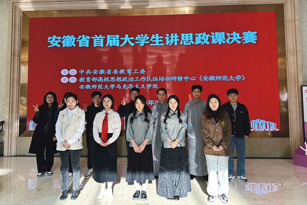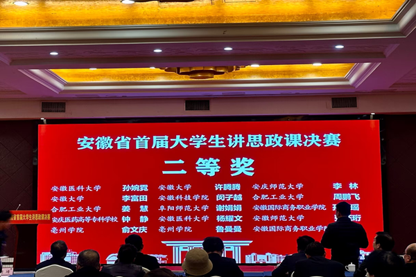 3月4日,由安徽省委教育工委主办的全省首届“大学生讲思政课”决赛在芜湖市举行,此次参赛的选手为获得皖南、皖中、皖北片区赛一、二等奖获奖选手,参赛队伍围绕《习近平新时代中国特色社会主义思想概论》《毛泽东思想和中国特色社会主义理论体系概论》《马克思主义基本原理》《中国近现代史纲要》《思想道德与法治》《形势与政策》六门课程中的内容进行讲课。