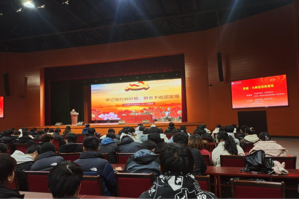 为深入学习贯彻党的二十大精神,进一步落实教育部等部门《全面推进“大思政课”建设的工作方案》的通知,围绕立德树人根本任务,调动一切育人主体、发掘一切育人资源,利用好身边最美奋斗者、改革先锋、时代楷模等先进人物事迹,形成强大育人合力,12月15日下午,我校在凤阳校区大学生活动中心举办“英模·大师”进思政课堂主题报告会。本次活动由校党委宣传部、马克思主义学院、学生处、校团委共同举办。特邀徐淙祥作题为“牢记嘱托多种粮,粮食丰收国富强”主题报告,徐淙祥现任太和县“国家农业科技创新基地”党支部书记,安徽省农村经济合作组织联合会副会长,先后荣获“全国劳动模范”“全国种粮标兵”“全国三农人物”“全国十佳农民”“全国科技兴农带头人”“大国农匠”“中国好人”“2022年感动中国人物”“2022诚信之星”等称号。专题报告由会马克思主义学院院长张德化主持,近两百名师生参加。