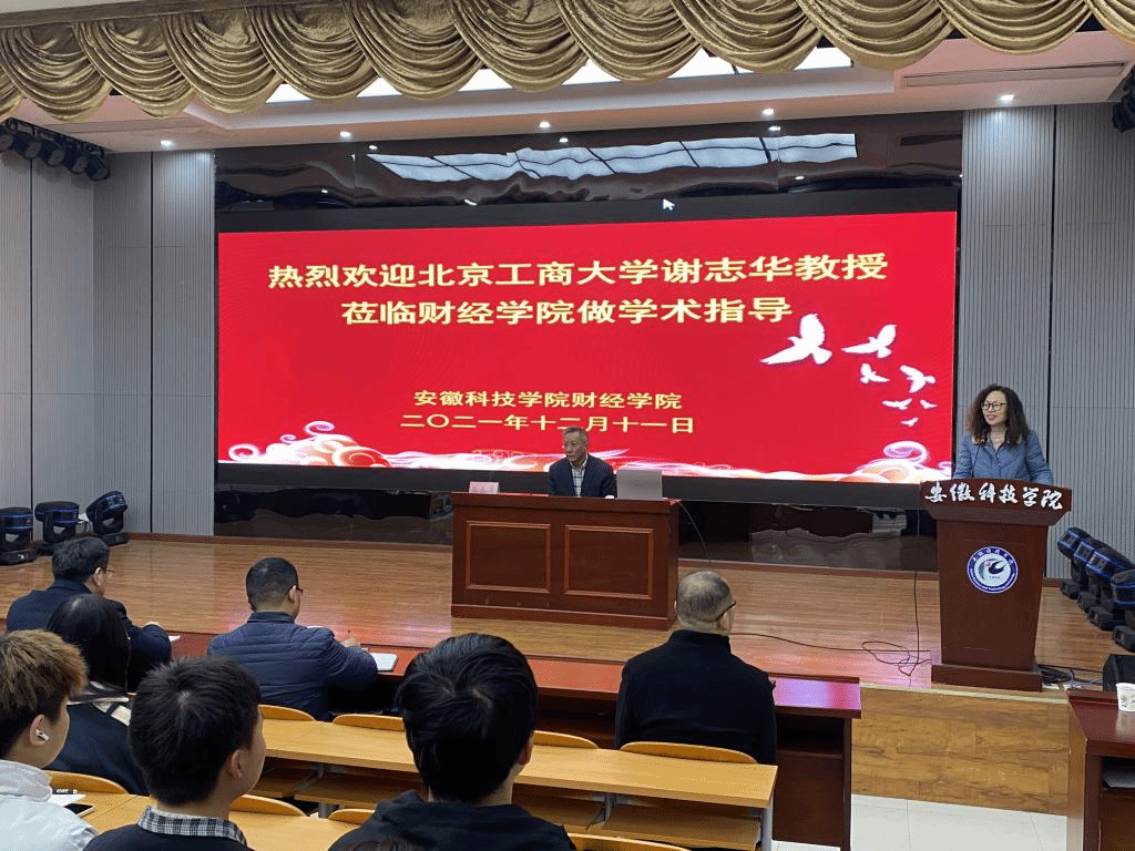 2021年12月11日上午,北京工商大学原副校长、现任教育部工商管理学科指导委员会副主任委员谢志华教授应邀莅临我校财经学院指导新商科专业建设,安徽财经大学会计学院院长翟胜宝教授随行指导。谢志华在敏行楼A一楼报告厅做了题为“新技术与新商科”的学术讲座,爱体育手机官方网站_爱体育(中国)党委委员、副校长黄友锐、教务处处长赵伟峰、财经学院党政领导和全体教职工以及2021级会计学、2021级金融工程专业学生参加报告会。财经学院院长郝世绵主持报告会。