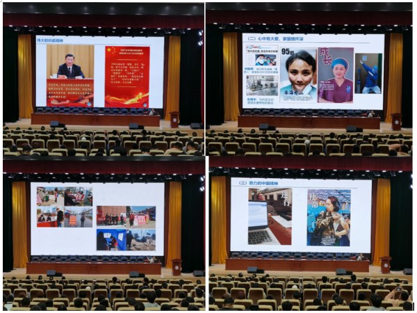 许欣以“疫情下青年的责任与担当”为题,围绕“中国何以可能”、“人民何以可以”、“青年何以可为”三个方面进行讲解。她指出,此次疫情防控攻坚战取得决定性胜利,靠的是党的硬核领导力、国家的强大动员力及勠力同心的中国精神,在全国抗击新冠肺炎疫情表彰大会上,习近平总书记生动诠释、深情礼赞“生命至上、举国同心、舍生忘死、尊重科学、命运与共”的伟大抗疫精神,大力弘扬中国精神、中国力量、中国担当。面对疫情大考,当代青年不畏艰险、忠诚履职、无私奉献,彰显出青春的蓬勃力量,勇敢地肩负起新时代赋予青年的责任与担当。最后,许欣鼓励同学们扎根中国大地,谱写胸有大志、心有大我、肩有大任、行有大德的大写青春。