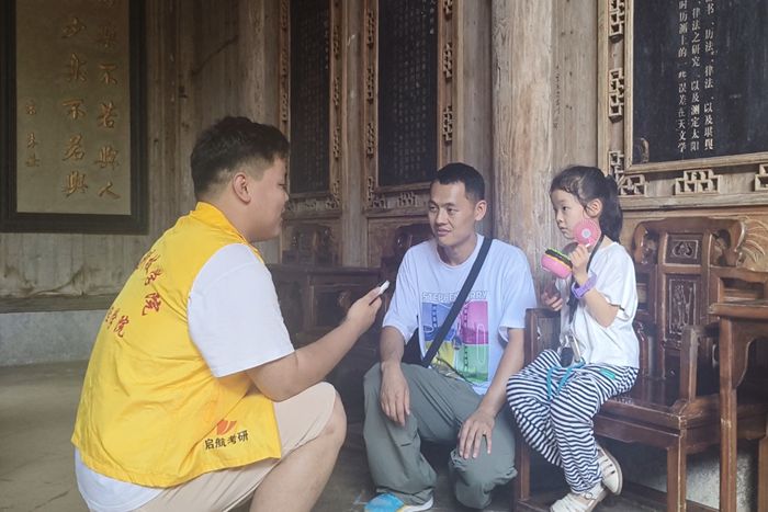 在文化调研环节,团队成员对国内外游客进行访谈。一位美国游客赞叹道:“宏村的水系设计太精妙了,像一幅流动的水墨画,让人着迷,这种生态理念值得世界借鉴”。国内游客则表示,这里白墙黛瓦的建筑,充满着江南独有的诗意与浪漫。通过与当地非遗传承人、老手艺人的深入交流,队员们了解了宏村的历史变迁、风土人情和生活故事,感受到村民对家乡深深的热爱与自豪。