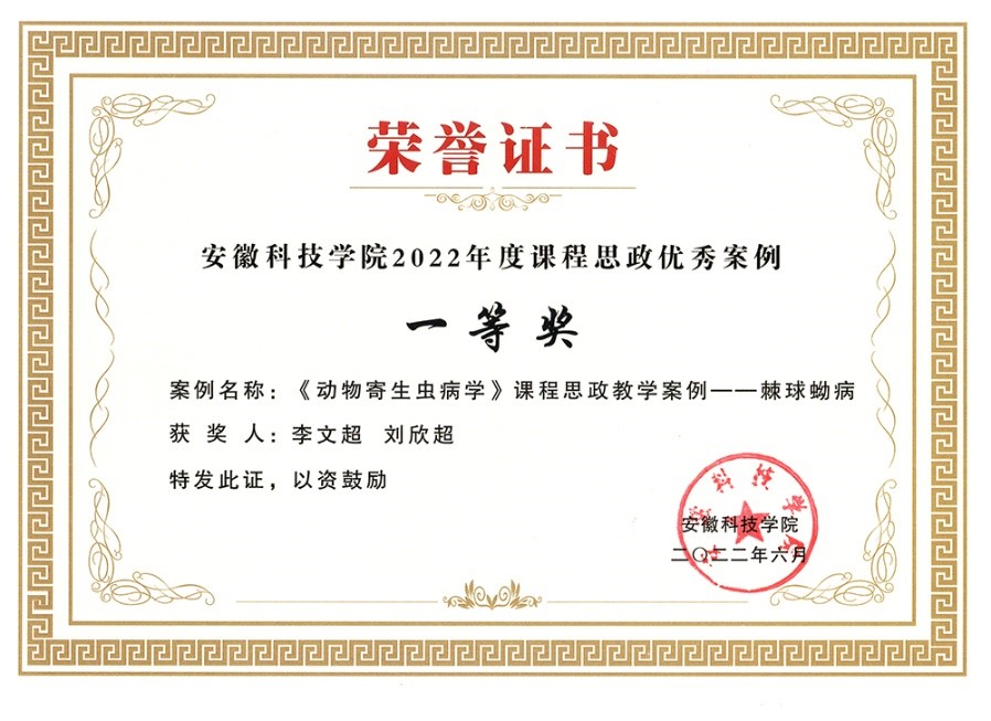 教师是落实立德树人根本任务的第一责任主体,教师课程能力的提升是实施课程思政的关键。党支部高度重视例行的党员政治学习与教职工政治学习,持续深入学习贯彻党的二十大精神与习近平新时代中国特色社会主义思想、深刻领悟全国高校思想政治工作会议精神,不断提升教师个人的德育水平与党性修养。通过在线学习相关思政专家授课、校内魅力课堂、名师课堂形式组织教师学习,提高教师德育意识和思想教育能力,提升专业教学与思想教育深度融合水平,确保所有专业课堂都带有浓郁思政味。目前,党支部教师贺绍君获评省级教学名师,刘德义、贺绍君、李静等荣获第七届“雄鹰杯”小动物医师技能大赛优秀指导教师二等奖,李静等被评为校级课程思政教学名师,路振香、郭伟娜等荣获2022年校级优秀本科毕业论文指导教师。