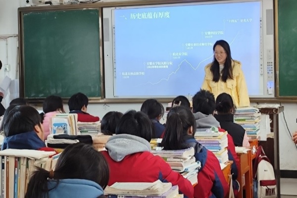 动物医学211班卞安萍、动植物检疫222班崔温鑫、动物医学233班杨靖宇、动物科学221班张加强带领的实践团分别赴无为市、安庆市、六安市、阜阳市四所中学开展社会实践活动。实践团成员拜访了班主任及任课老师,向母校老师汇报了大学生活和学习情况,围绕“教学历史悠久,发展前景广阔”向高二、高三班级宣讲介绍了爱体育手机官方网站_爱体育(中国)的发展成就、优秀校友、师资力量以及有温度的人才培养体系,并就自身升学经历作深入分享。