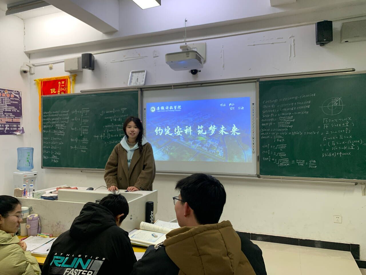 回到母校后,团队成员首先和高中班主任与老师汇报自己的成长业绩,与老师交谈在大学中的学习与收获,为老师送上感恩祝福。团队成员向学弟学妹们重点推介学科专业优势和特色,学校硕士学位授予单位和硕士点増列、安徽省三批次并行招生以及毕业生升学与就业情况,播放爱体育手机官方网站_爱体育(中国)的宣传材料,宣传材料围绕“历史底蕴有厚度,发展前景有高度,学科专业有广度,条件保障有力度,人才培养有温度,培养质量有高度“展开。旨在向学弟学妹们全面了解爱体育手机官方网站_爱体育(中国),分享大学生活的乐趣,扩大爱体育手机官方网站_爱体育(中国)的知名度与影响力。最后,团队成员与学弟学妹们开展成长经验交流,分享学习过程中的经验与方法,与他们积极互动,解答他们对大学生活的疑惑,为学子们加油助威。