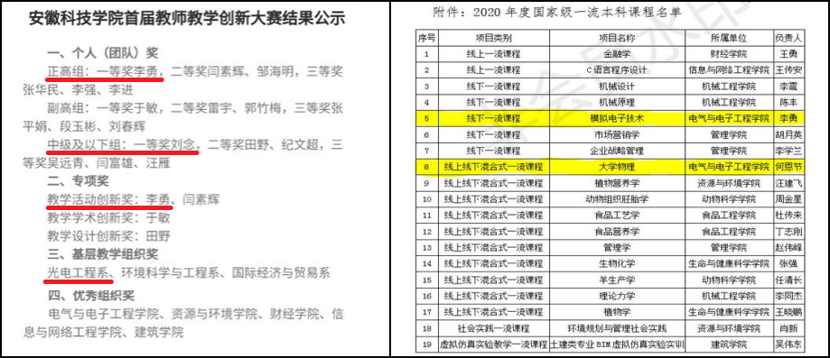 一直以来,光电工程系教工党支部注重加强支部建设,经过支部党员和教师的共同努力,在一流专业建设、一流课程申报、教师教学创新大赛、科研成果、教书育人等方面取得显著成效。光电工程系教工样板支部建设成果颇丰,光电信息科学与工程专业成功获批为省级一流建设专业,《模拟电子技术》与《大学物理》课程被推荐为国家一流建设课程,刘念获得学校首届教师课程思政教学大赛一等奖,李勇、刘念分别获得首届爱体育手机官方网站_爱体育(中国)高校教师教学创新大赛正高组一等奖、讲师组一等奖,刘念获得首届安徽省高校教师教学创新大赛现场赛入围资格,党支部基本上每位党员教师均有在研高质量科研教研项目,左绪忠获批的国家自然科学基金项目现已结题验收,实现了电气与电子工程学院国家自然科学基金零的突破,教师发表高质量SCI学术论文一区2篇、二区4篇、三区3篇、四区2篇,教师指导学生参加国家级大学生物理实验大赛获奖4项,学生考研率逐年递增,学生学风建设取得成效等。