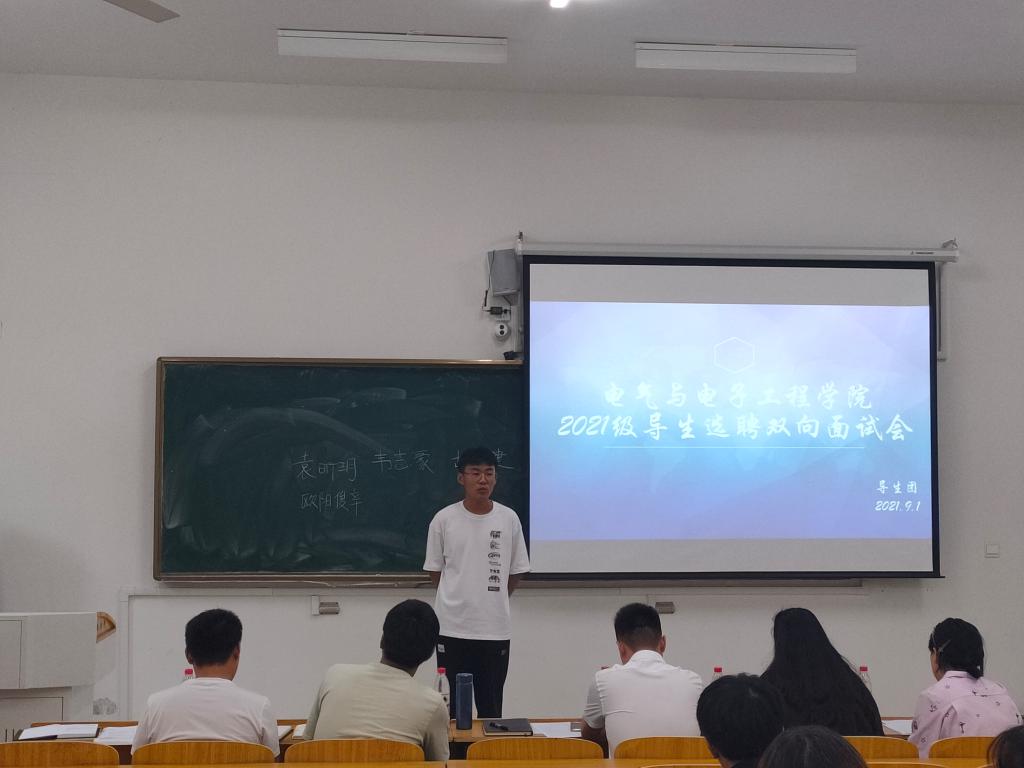 为有效开展新生的思想教育和管理工作,9月7日,电气与电子工程学院举行新生导生双选会,电气学院党委副书记尚磊,党政办公室主任王延丽,团委书记张成孜,辅导员陈更强、张深、洪乃羽、于宏亮担任本次的面试官,对选聘导生进行评分指导。