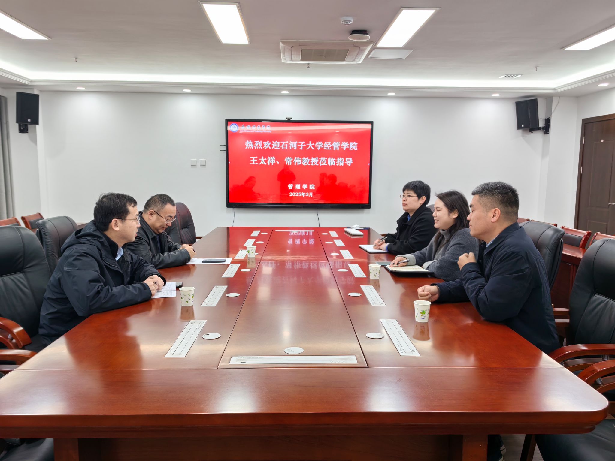 郑谦代表管理学院对王太祥一行的到来表示了热烈欢迎。她简要介绍了学校基本情况,重点介绍了学院的学科专业、师资队伍、科研平台建设以及研究生培养等情况。