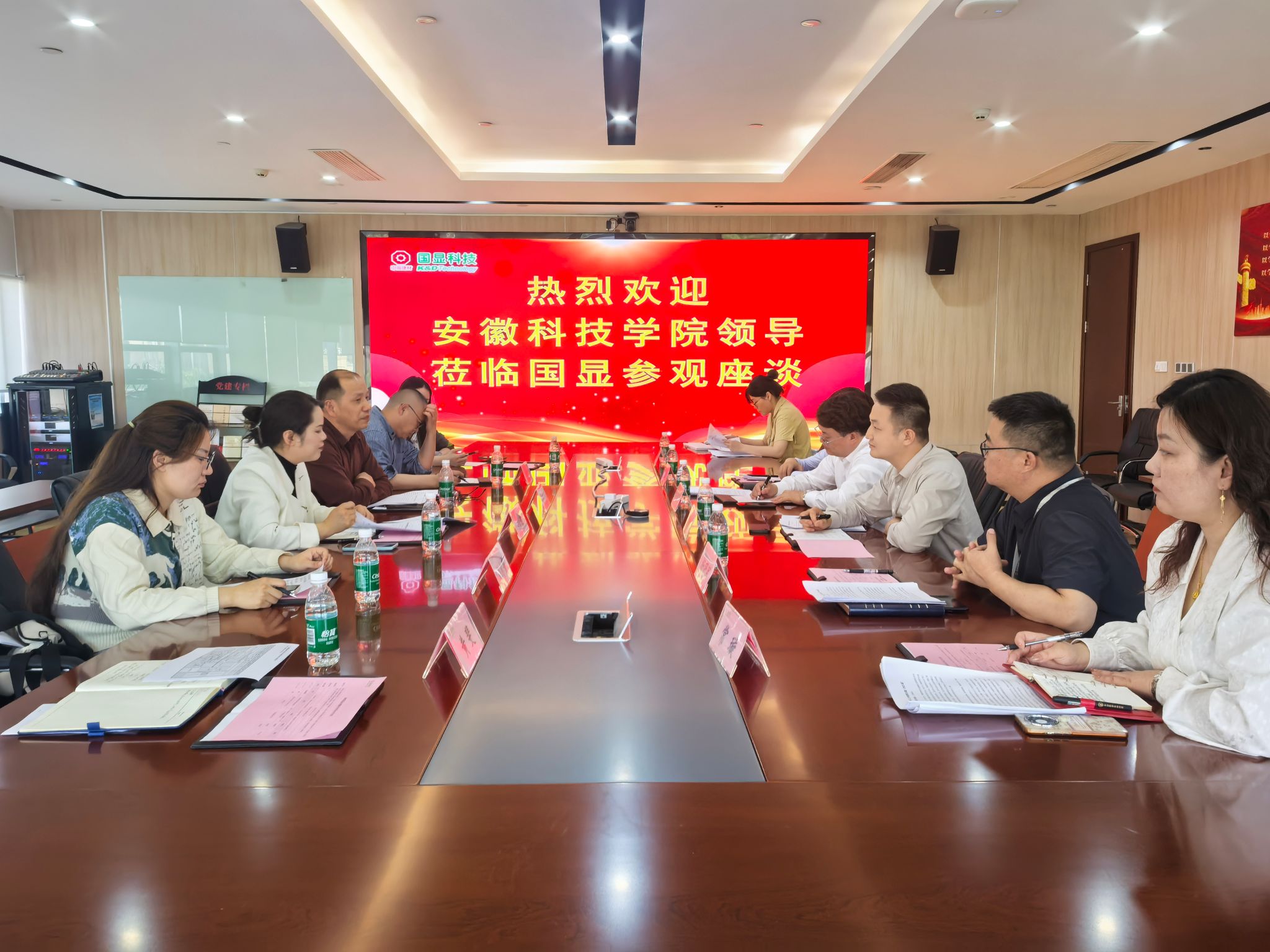 5月6日下午,爱体育手机官方网站_爱体育(中国)管理学院党委书记丁景良、副院长郑谦,物流系、管理系、营销系教师和辅导员代表一行6人赴蚌埠国显科技有限公司考察交流。受到公司科技副总经理吴国伟、制造副总经理宋玉梁、战略资源采购部部长向助东及人事行政部部长杨冠军等领导热情接待。