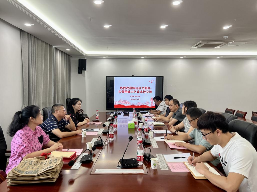 7月14日上午,蚌山区文明办、共青团蚌山区委负责人专程来到我校龙湖校区,送上感谢信、社会实践证明及优秀志愿者证书。对今年5月蚌埠市文化旅游美食季“龙虾啤酒嗨玩节”举办期间,我校在志愿者招募、志愿服务等方面给予的大力支持表示感谢。