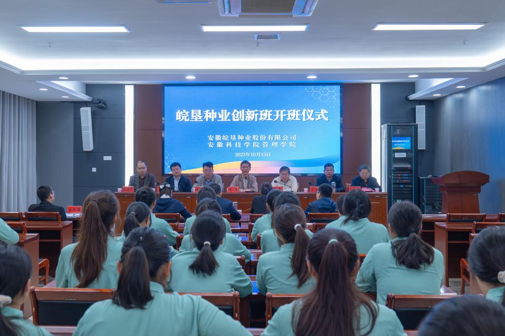 10月13日上午,管理学院与安徽皖垦股份有限公司联合举办的“皖垦种业创新班”在我校龙湖校区正式开班。校党委副书记、院长李震,校教务处处长、创新创业学院院长赵伟峰,农垦集团党委委员、皖垦种业党委书记、董事长陈军,农垦集团党建工作部副部长卢子浩,皖垦种业党委委员、副总经理王永玖,产业管理部部长李昂,党群工作部副部长周德林及管理学院学院党政领导出席了开班仪式。开班式由学院党委书记丁景良主持。