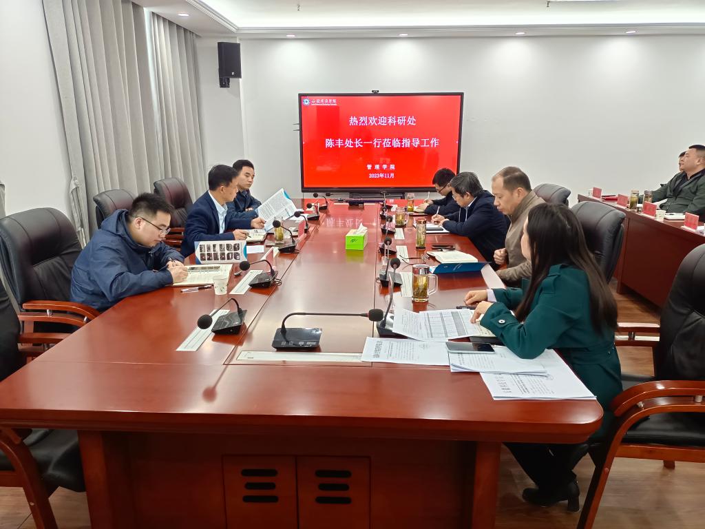 11月9日下午,科研处处长陈丰、副处长陈浩等一行3人到管理学院调研指导科研工作。管理学院党委书记丁景良,党委副书记、院长陈传万,副院长郑谦,副院长张国宝,以及各教研室主任、博士、教授代表等参加了会议。会议由陈传万主持。