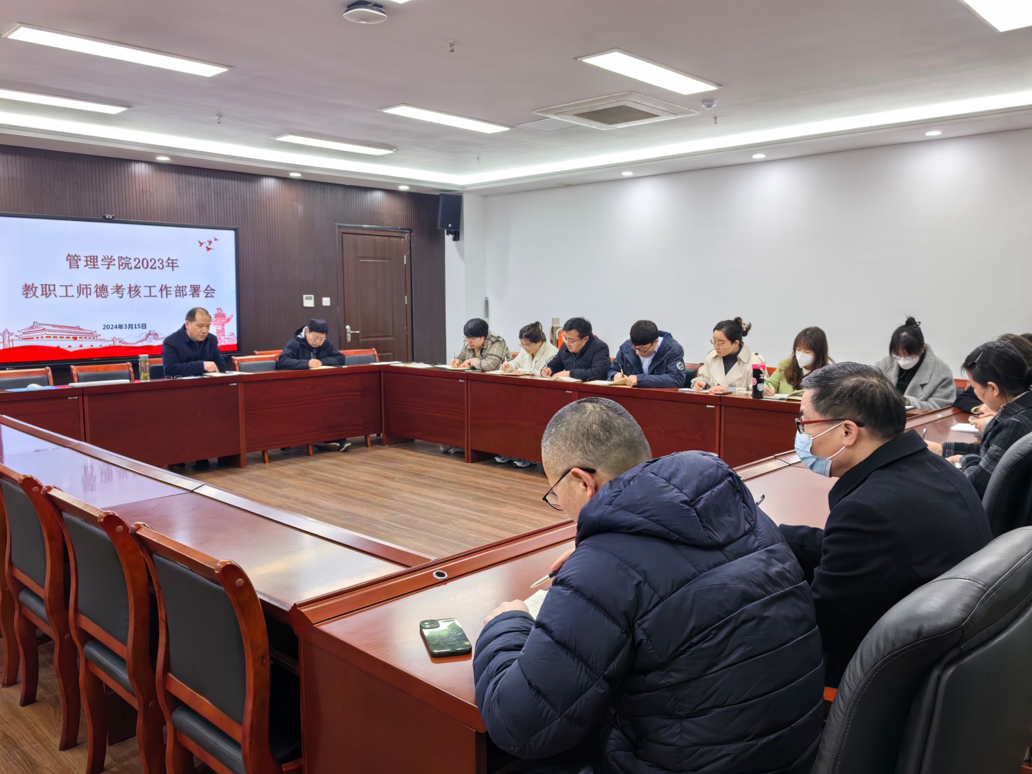 3月15日上午,管理学院在西附楼225会议室召开2023年教职工师德考核工作部署会。学院党政主要领导及全体系室主任、辅导员参加会议。会议由院党委书记丁景良主持。