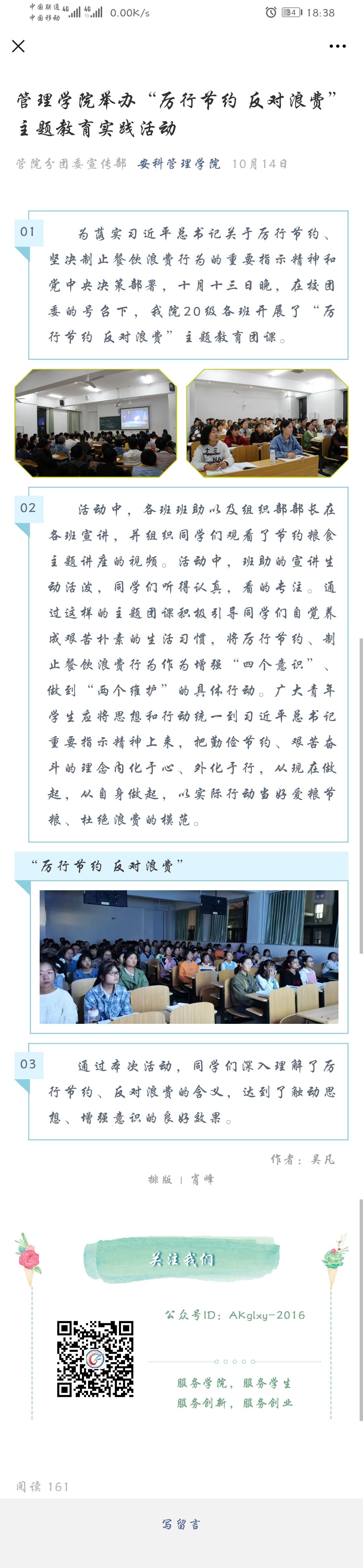 管理学院组织开展“厉行节约、反对浪费”主题团日活动(组图)