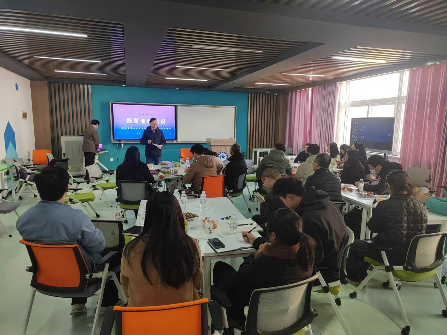 培训会上教师们认真学习,积极参与互动,就平台建设、课程开发、AI助教应用等方面进行了探讨和交流,通过此次培训,提高了教师对智慧课程建设的认识,推动了智慧课程的建设与应用。(特约通讯员:黄丹丹 摄影:高尚 审核:高青海)