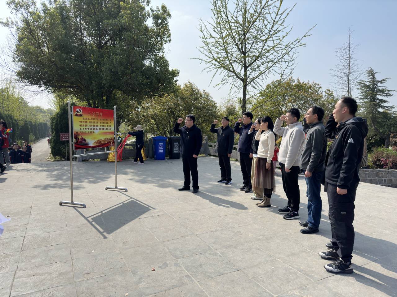 在庄严肃穆的烈士陵园,大家着装整齐,全体肃立,齐唱国歌,面向革命烈士纪念碑为革命事业英勇献身的烈士们静默致哀,寄托哀思,深切缅怀革命先烈的丰功伟绩,表达对先烈沉痛的哀悼和无尽的崇敬之情。活动中,全体党员面向鲜红的党旗,高举右拳,重温对党的铮铮誓言,再次接受党性洗礼。