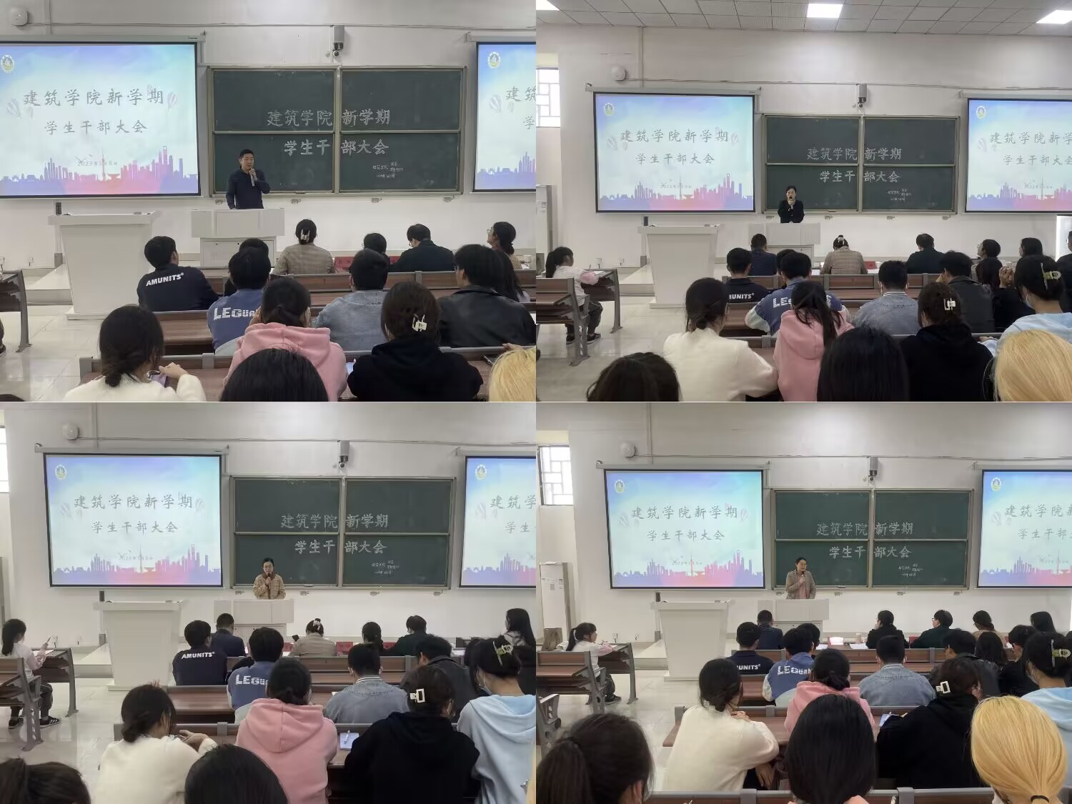 新年新气象,新春新目标。3月8日下午,建筑学院在致知楼B111召开了新学期学生干部大会。学院党委副书记、纪委书记谢宜勤,全体辅导员,各学生团体组织及各班级主要学生干部参加会议。会议由学院团委书记沈德艳主持。