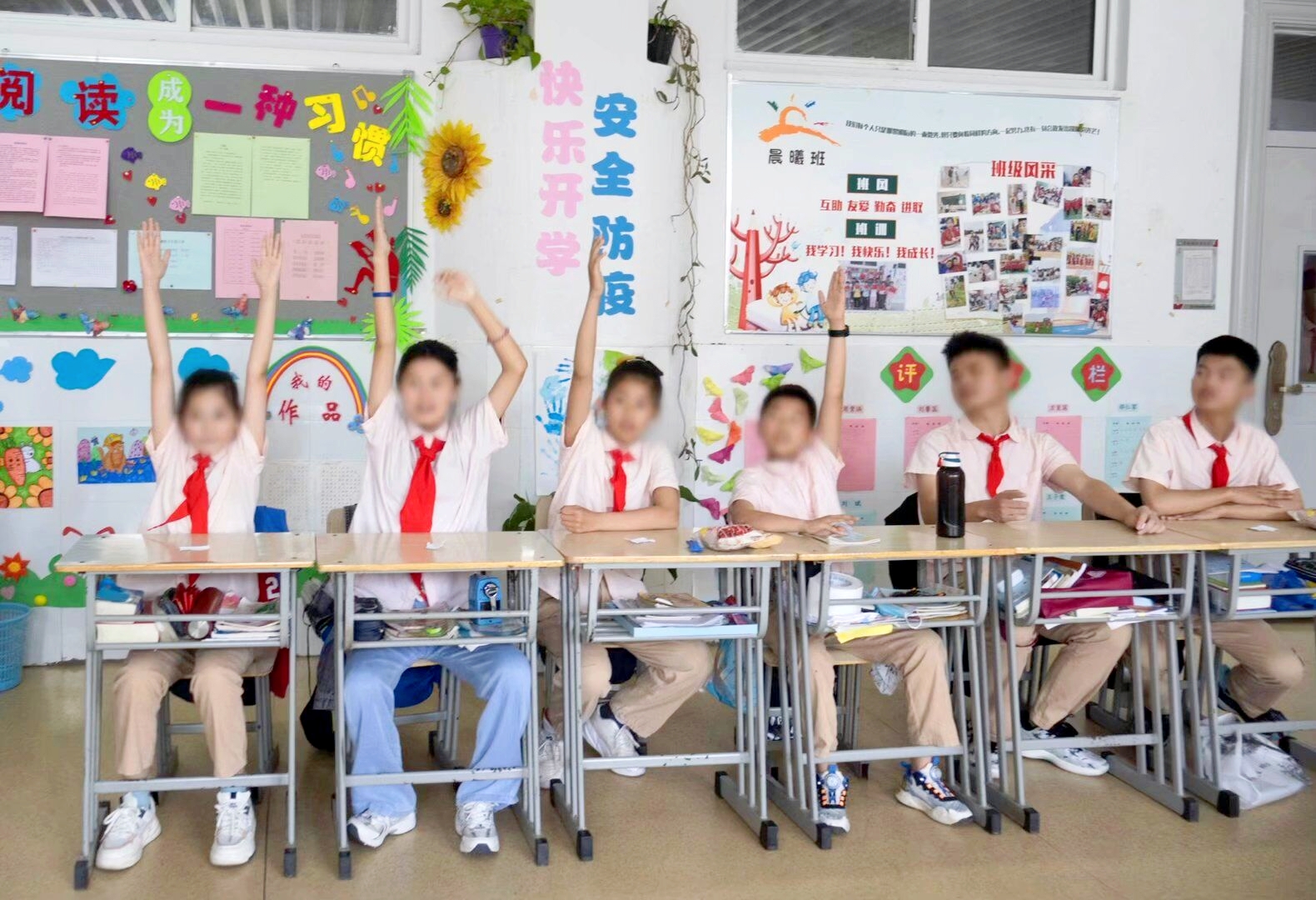 实践团队成员开展“童心向党 薪火传承”主题队课期间,带领五(1)班的少先队员们学习《我们是共产主义接班人》手势舞。刚开始学习时,队员们略显局促,但是他们神情专注,目光坚定,认真跟着团队成员的节奏慢慢学习。一遍又一遍,在班主任胡向红和团队成员的鼓励下,孩子们越来越熟练。他们整齐划一,随着动听的旋律起舞,脸上洋溢着灿烂的微笑。小小的手臂举过头顶,庄严地敬出少先队队礼。“看到他们阳光可爱的模样,我觉得我们做的这一切都有了意义。”团队成员解俊贻活动结束之后感慨道。