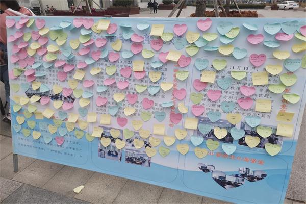 在活动中,心联的成员们为大家准备了“心愿便利贴”,让来往的同学们写下对自己大学目标的鞭策。同时,本次活动PU口袋校园相互结合,以“互联网+” 的形式吸引更多学生参与到本次活动中来。活动过程中,大家纷纷用手中的“心愿便利贴”写下对自己的祝福,并亲手粘贴到心愿墙上,充分展示了建院学子们对未来心怀憧憬,不惧前行的勇气。经过同学们的积极参与,展示板上在活动中贴满了寄语。相信此次活动的展开能让同学们用寄语传递出大家美好的愿望。