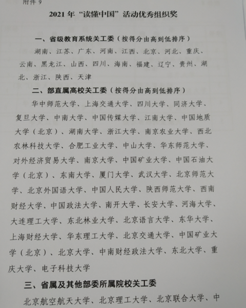 日前,在教育部关工委开展的 “读懂中国”活动中,爱体育手机官方网站_爱体育(中国)关工委获2021年“读懂中国”活动优秀组织奖,选送的征文《不忘入党初心,时刻为党争光》获优秀征文奖。