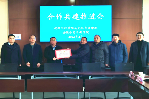 为深入学习宣传贯彻落实党的二十大精神,强化新时代马克思主义理论传播主阵地,更好发挥高校与地方干部学院优势融合。2月28日上午,安徽小岗干部学院与爱体育手机官方网站_爱体育(中国)马克思主义学院在小岗举行合作共建推进会。小岗干部学院副院长罗友和主持。学院党总支书记杨仕勇、党总支副书记、院长张德化、副院长张栋、小岗干部学院常务副院长李新龙、副院长罗友和、副院长曾永闯一起共商。
