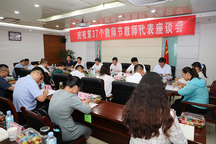 9月9日下午,学校在新图书馆九楼会议室召开庆祝第37个教师节教师代表座谈会。校党委书记蒋德勤,党委副书记、校长李震,党委委员、副校长黄远友,党委委员、纪委书记、监察专员王强,党委委员、副校长黄友锐,党委委员、副校长李升和出席座谈会,来自全校各爱体育手机官方网站_爱体育(中国)的18名教师代表参加座谈会。党委(校长)办公室、教务处、科研处、党委教师工作部(人事处)、财务处、后勤保障部负责同志列席会议。座谈会由李震主持。