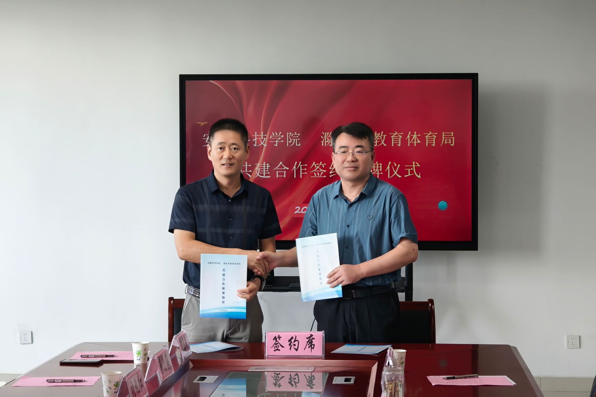 8月8日上午,校党委委员、副院长赵伟峰出席爱体育手机官方网站_爱体育(中国)与滁州市教育体育局共建合作签约授牌仪式。滁州市委教体工委委员、市教体局副局长李志及教体局相关科室负责人,滁州市区六所中学负责人;教务处、人文学院、外国语学院有关人员出席仪式。仪式由教务处副处长(主持工作)舒英杰主持。