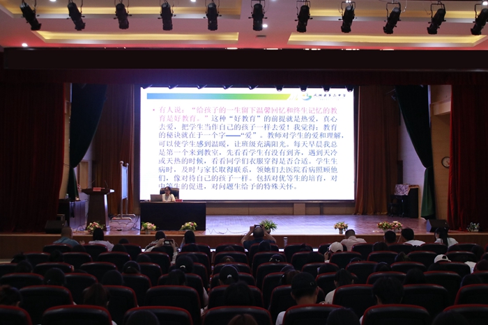 凤阳三中汪灵芝老师以《带上她的眼睛》为题,展示了一堂极具魅力的语文公开课。汪老师通过生动的视频、精彩的讲解和富有启发性的提问,紧扣科幻主题,引导学生思考,充分尊重学生的阅读体验,课堂氛围积极活跃。随后,汪老师又以《班级管理的秘诀就在于一个字——“爱”》为题,结合自身的班级管理经验和教育理念,阐述“爱”在班级管理中的重要性。她从“爱学生、爱同事、爱家长”三方面向研习学生们分享了鲜活的教育教学案例,强调了“爱”在班级管理中的核心地位,引导学生用爱育人、用心教书,关注学生成长,营造和谐的班级氛围。