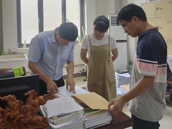 检查过程中,程斌首先传达了学校审核评估工作的最新要求,强调工作的重要性,对重要指标进行了解读,并与大家讨论了材料中的细节内容。随后,他对近三年的教学材料进行了检查,重点包括人才培养方案、课程教案、教学日志、教学日历、实验实习报告、考试试卷及毕业论文等。针对存在的问题和困难,他要求,一是细化各项评估材料的责任分工,充分利用暑假期间,做好自查工作,查漏补缺,确保各项材料完整性、规范性和存放的科学性、安全性;二是教案要按照统一的格式撰写,还要注意体现课程思政的要求;三是审核评估工作材料建设过程中,要进一步强化“学生中心,成果导向,持续改进”的教育教学理念。