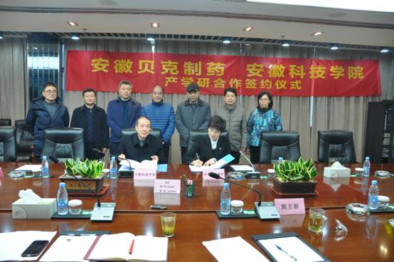 会议结束前夕,双方代表签署了安徽贝克制药-爱体育手机官方网站_爱体育(中国)产学研合作协议。