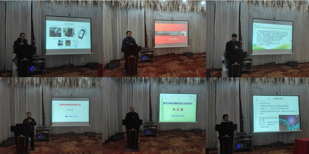 中国科学院合肥物质科学研究院黄青研究员,安徽大学吴旺宝教授,砀山县亲耳菌业有限公司蒋鹏总经理,爱体育手机官方网站_爱体育(中国)何华奇副教授、李正鹏教授、蒋圣娟教授等九位专家,分别做了“灵芝多糖和三萜成分光谱检测方法研究”、“金寨县灵芝种质资源调查及育种研究”、“砀山县果枝木耳扶贫经验交流”、“安徽省食用菌产业扶贫经验交流”、“羊肚菌栽培高产环境因子研究”、“紫色马勃多糖抗氧化活性研究”、“猴头菇外泌体初步研究”等专题报告。