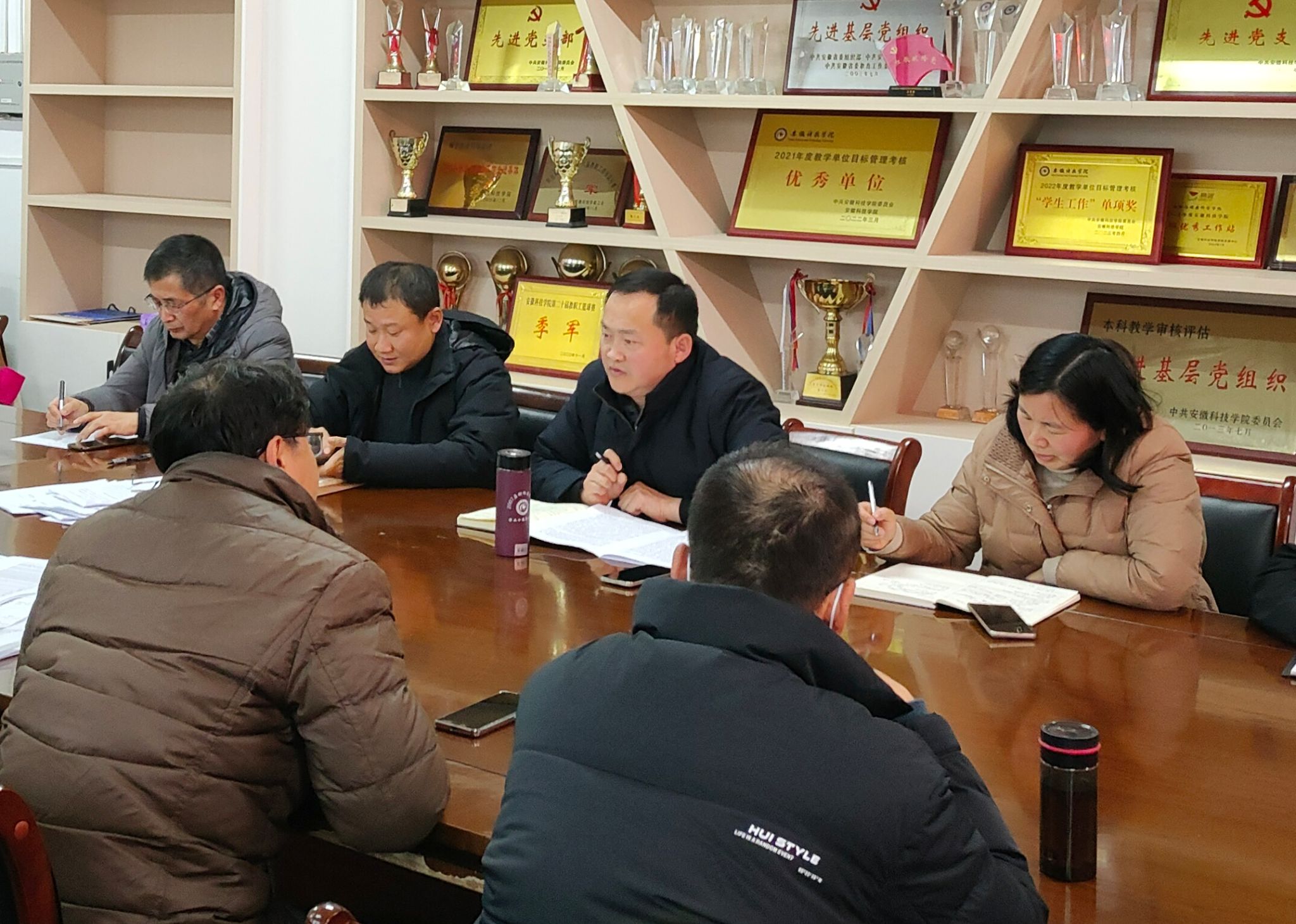 副院长钱立生重点传达了期初学校层面召开的职务科技成果赋权改革、科研工作、审核评估等会议精神,简要通报了生物与医药硕士点增列、教学基本材料归档、专利盘点等情况,详细安排布置了审核评估、质量工程项目检查验收和试剂耗材以及实验室安全管理等工作,同时宣讲了审核评估有关知识,并结合学院实际对日常教学、课程思政、科技创新、社会服务等提出工作要求和指导意见。