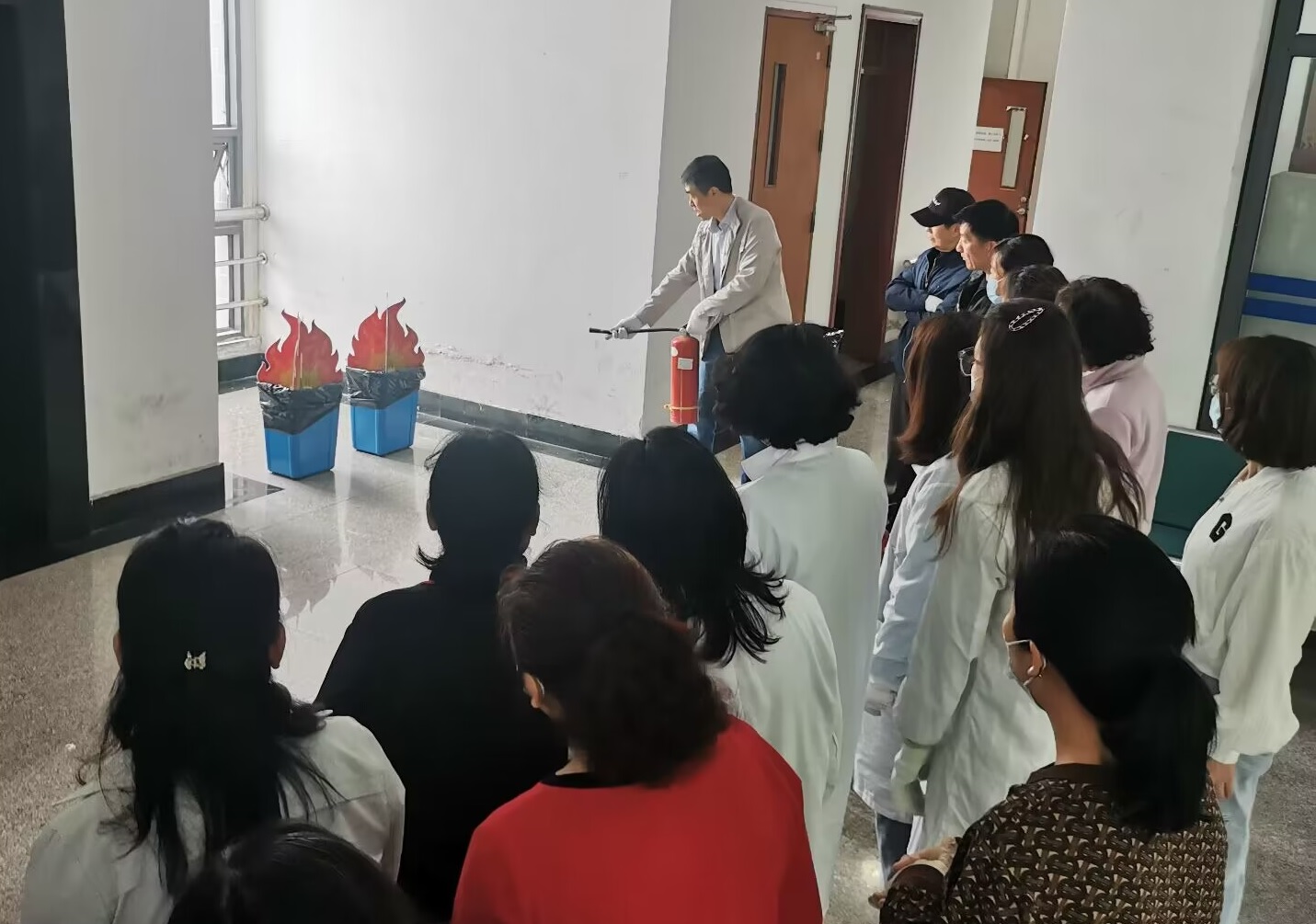 讲解结束后,馆员们依次拿起灭火器进行操作演练,实实在在体验了“拔销子、握管子、压把子”的实操规则。通过培训,馆员们对组织疏散、灭火器使用等知识有了更深的了解。(特约通讯员:刘淑婧 审核:汪徐春)