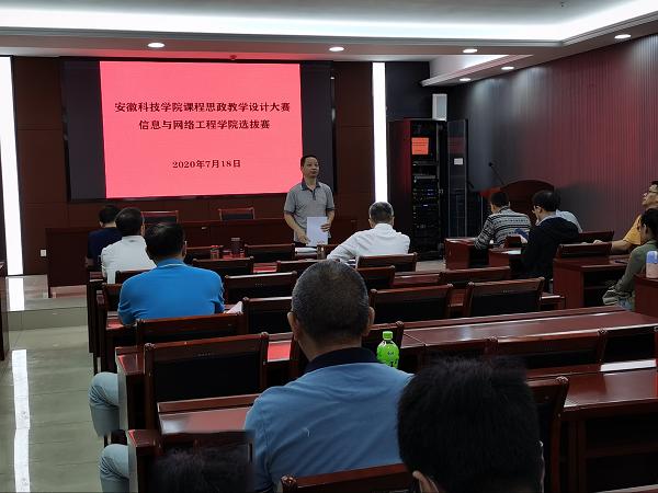 为有效贯彻全国高校思想政治工作会议精神,强化课程思政建设,全面提高人才培养质量,根据《教务处关于举办第一届课程思政教学设计大赛的通知》要求,结合学院工作安排,7月18日,信息与网络工程学院在龙湖校区西辅楼111会议室举行了信息与网络工程学院第一届课程思政教学设计大赛暨爱体育手机官方网站_爱体育(中国)第一届课程思政教学设计大赛信息与网络工程学院选拔赛。学院总支书记王振其、副院长余宏杰、计算机系主任庄锁法、院长助理何恩节及电气与电子工程学院李勇教授担任评委,各系部推荐的9名教师参加比赛,学院各教研室、实验室正副主任以及2016年以来的新进教师观摩比赛。