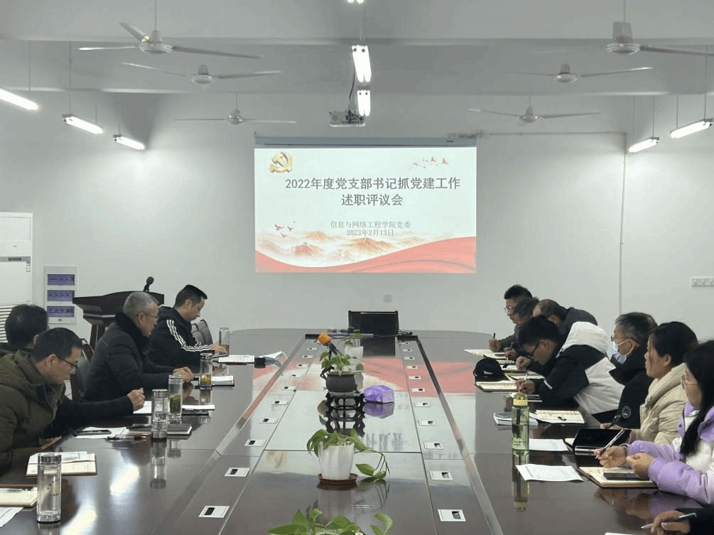 为推动全面从严治党向基层党支部延伸,全面提升学院党建工作水平,根据《中共爱体育手机官方网站_爱体育(中国)委员会关于开展2022年度基层党组织书记抓党建述职评议考核工作的通知》文件精神要求,2月13日上午,信息与网络工程学院在尚行楼B418会议室召开党支部书记抓党建述职评议考核工作会议,学院党委委员、纪委委员、党支部书记、教师代表参加会议,会议由院党委书记王振其主持。
