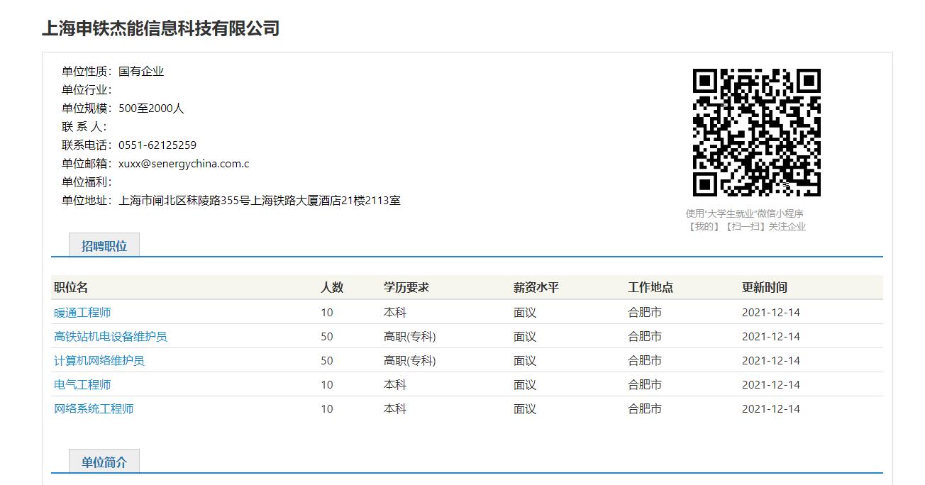 上海申铁杰能信息科技有限公司以中国铁路上海局集团有限公司为主体成立的,承担全局高铁车站的客运设施设备运行维护、技术支持与维修整治等工作,致力于高铁车站客运设备设施运行维护的智能化、标准化、规范化、专业化、市场化。 公司目前业务范围覆盖沪苏浙皖“三省一市”的18条高铁线路(京沪高铁、沪宁城际、沪杭城际、沿海铁路、宁杭高铁、杭甬高铁、合宁客运专线、合武客运专线、合蚌客运专线、金山支线、杭长高铁、合福高铁、金温铁路、宁安客运专线、宁启铁路、郑徐高铁)、202个车站(含路局客专调度楼)、涉及售检票、旅客引导、电梯、消防、暖通、电力、楼宇控制、给排水等系统的100多万件设备设施。 公司标识寓意申铁杰能充满“活力、潜力”,富有“创新、领先”精神,并将秉承“创新、集成、智联、领先”的理念,努力探索高效集约的高铁车站运行维护模式,提供精确、及时到位的高品质服务。 企业文化:快乐工作