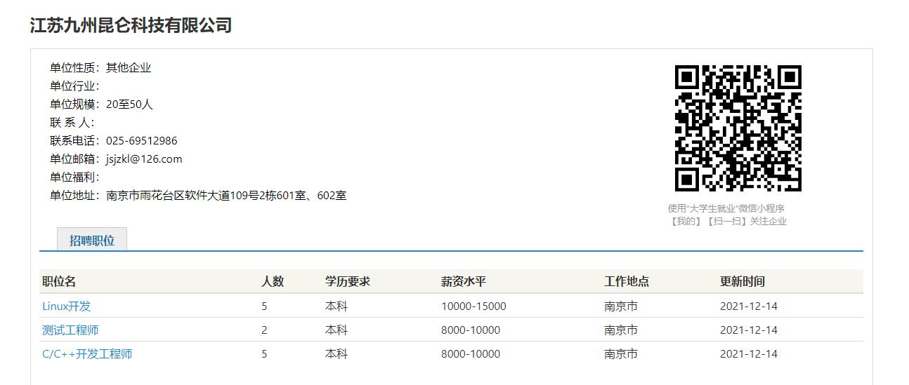 九州昆仑科技是 “掌握核心技术”的“独角兽”,面向政府机关、国有企业、金融行业等,从事企业级云计算及大数据核心技术研发,拥有完全的自主知识产权,在金融、通信、政企办公等领域已实现对国外品牌的全面替代,是国内掌握该领域自主知识产权并实现成功应用的少数企业之一。2017年,在国家“强基”专项扶持政策的支持下,公司在南京设立研发中心。根据公司业务发展需要,现面向高校应届毕业生招聘一批新生力量。诚挚欢迎热爱计算机,勇于接受挑战,德才兼备的人才加入我们的行列,共同放飞梦想,成就美好未来!