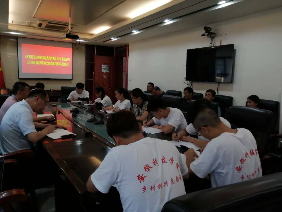 8月3日,我校“弘扬安科精神 助力乡村振兴”研究生志愿者暑期社会实践团与西阳镇政府社会实践对接会在该镇人民政府会议室举行。西阳镇党委书记牛华山,西阳镇各行政村党总支书记,我校驻王桥村扶贫工作队第一书记丁景良及驻村工作队张海亮、余维发三位同志,校研究生处马晓辉、兰彬两位老师及实践团全体成员参加会议。对接会由丁景良主持。