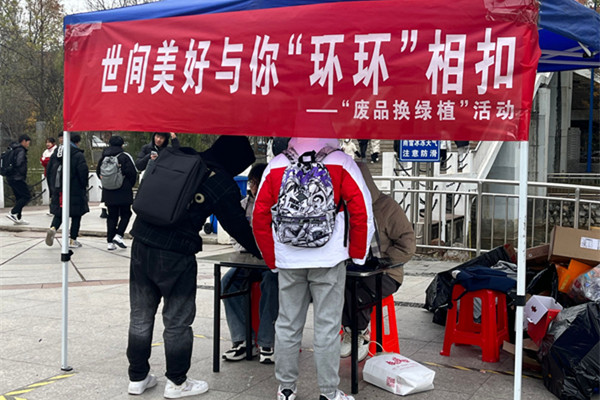 活动号召同学们将宿舍中可回收的废旧纸盒、塑料瓶、易拉罐等物品进行置换,以换取绿色植物。此次活动一开展就得到了同学们的积极响应,同学们以宿舍为单位,共同带着物品来到置换点,一路伴着欢声笑语。据统计,本次活动共回收废品60多公斤,近30盆绿植找到新宿舍。